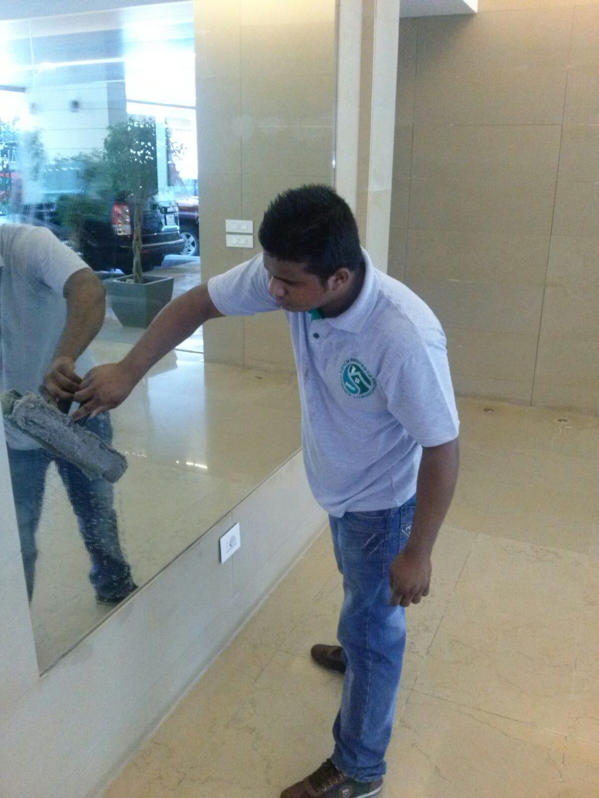 Wash windows inside and outside surfaces of various buildings, from private homes to offices. Our cleaners use brushes, sponges, or wet cloths to apply soapy water or other cleaning solutions to the surfaces. Dry the wet glass with a cloth, chamois skin, or squeegee. When they work on windows above the ground floor, window cleaners use scaffolding, ladders, or special swinging seats. Sometimes crawl through windows from the inside and support themselves with safety belts hooked to brackets.